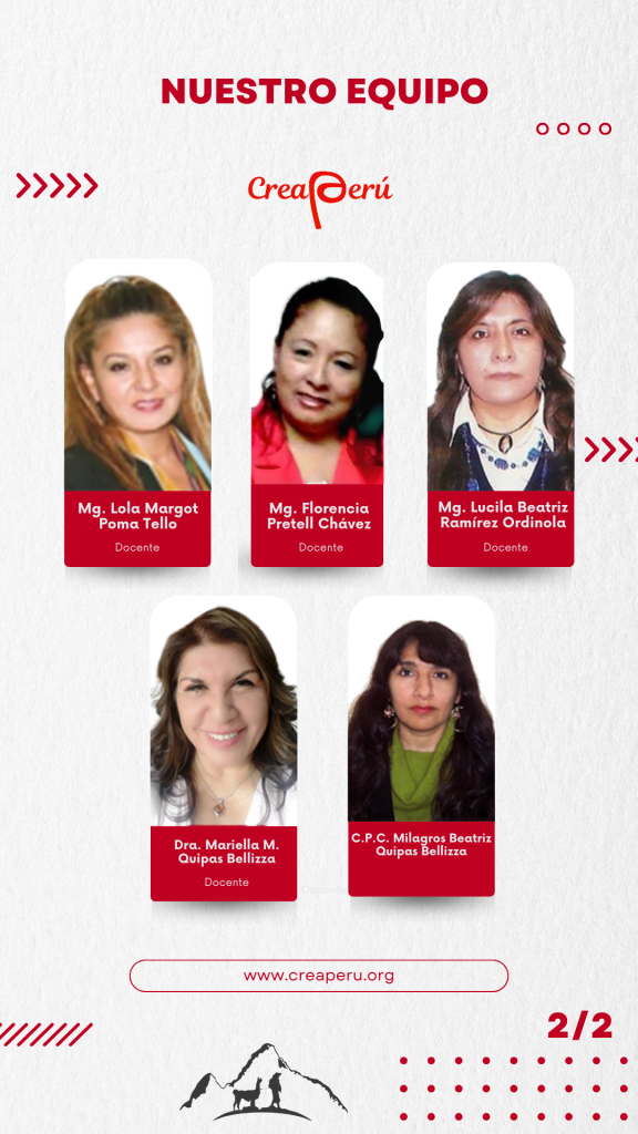 La Asociación de Investigación Educativa “Crea Perú” creada el 18 de noviembre del año 2013 responde a las necesidades educativas del país, considerando entre sus fines el promover y llevar a cabo estudios, consultorías a instituciones educativas a nivel superior y básica, realizar investigaciones y desarrollar proyectos educativos que contribuyan a realzar el arte, la cultura, el proceso formativo en educación, informática, marketing y publicidad, turismo, ciencias contables y empresariales en el país en sus diversas modalidades.